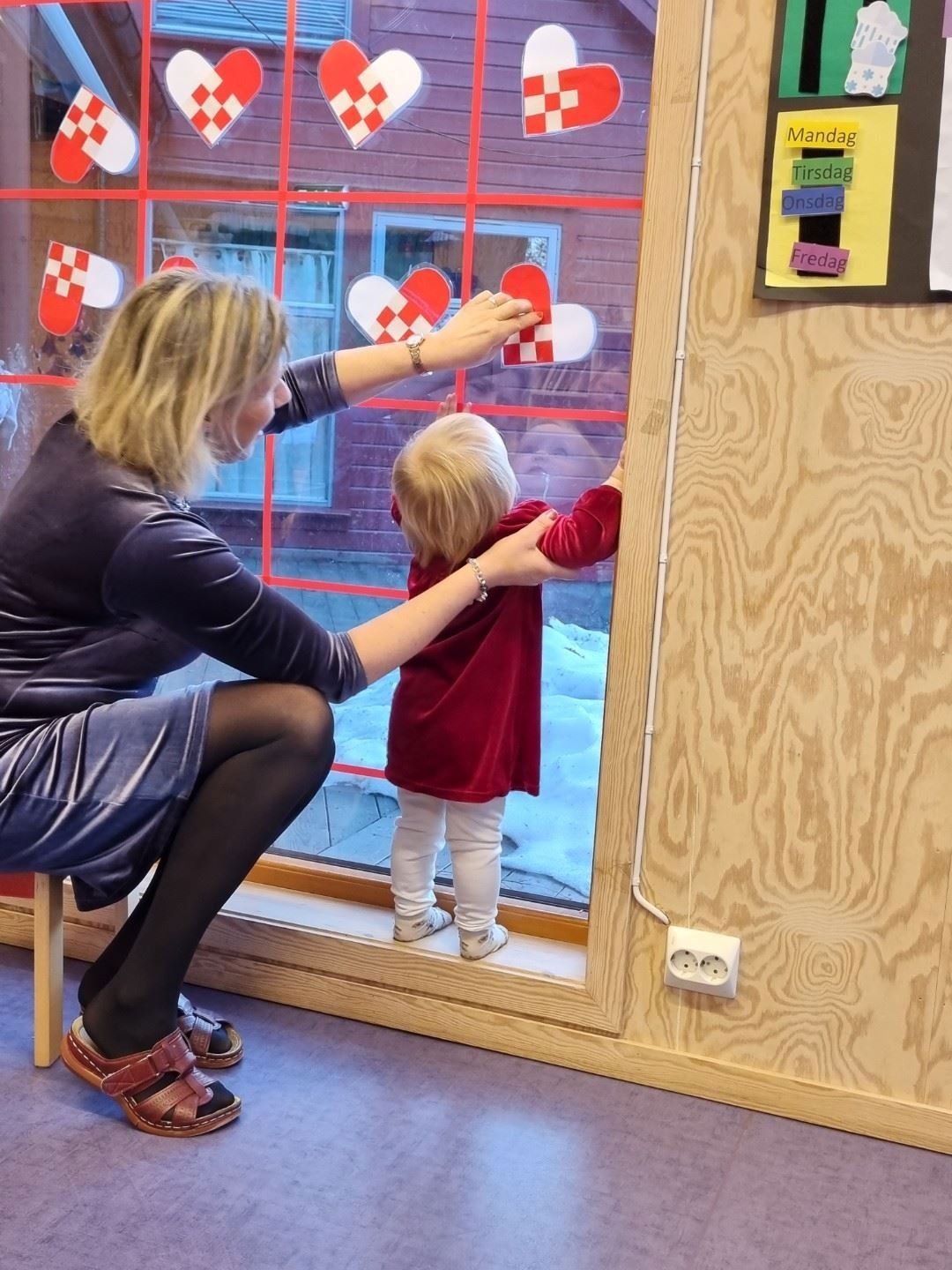 På Skogstjerna gjør vi mye forskjellig i adventstiden. Vi har bakt peppernøtter og pepperkaker. I tillegg har vi lagd gaver. Det er veldig moro med maling. Den er rar og ta på. Noen synes det er gøy og andre ekkelt. I adventssamlingnen tenner vi lys og synger julesanger. Hver dag trekker vi et barn som henger opp et hjerte i vinduet. Det fungerer som vår julekalender, der vi teller ned mot jul. Barna får også med seg et pepperkakehjerte hjem som de har pyntet. I tillegg pakker de opp en pakke med en figur fra julekrybben. Vi snakker om figuren og rollen i julefortellingen. Torsdag forrige uke hadde vi julebord. Vi spiste kalkun og hadde pyntet oss. I tillegg kom nissen. Han var litt mindre skummel nå en sist han var her. Han var nemmelig inne på avdelingen på nissefesten vår, og det var veldig skummelt. Denne gangen kom han ikke inn, men noen av barna kom ut til ham.